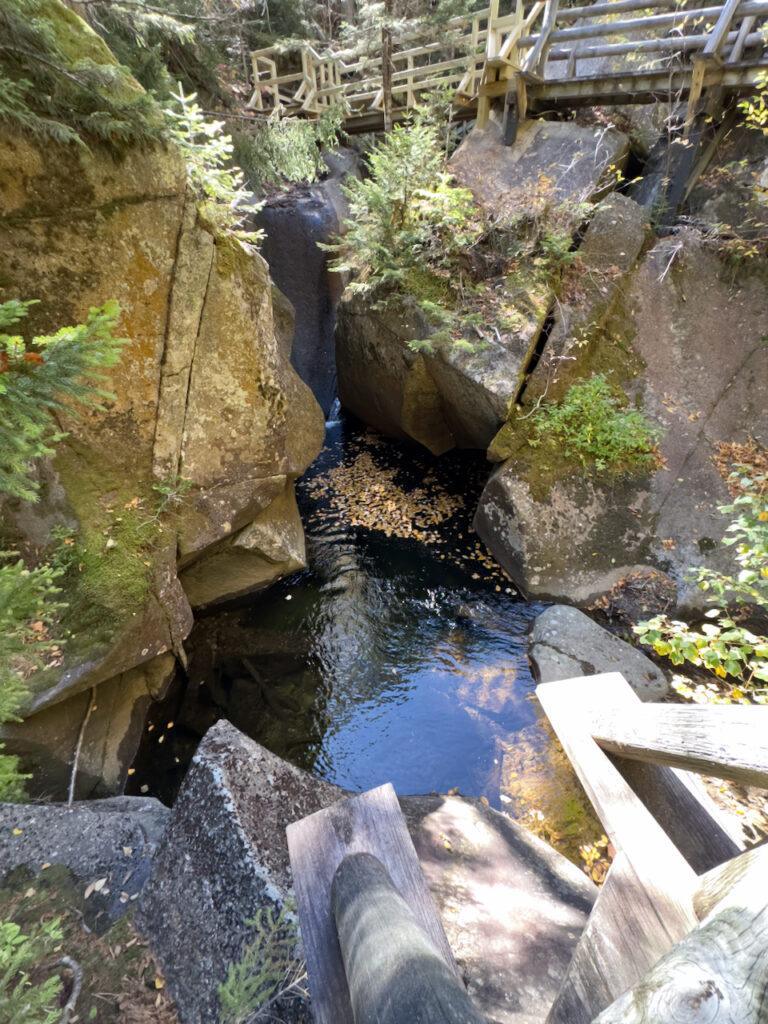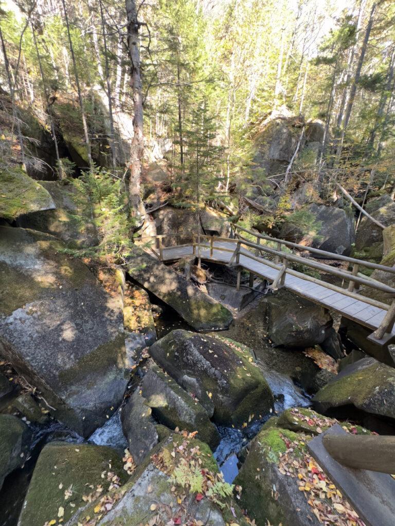 Lost River Gorge is a naturally formed gorge in Kinsman Notch, created by the immense power of melting glaciers at the end of the last Ice Age. As the ice sheet receded, meltwater and massive boulders carved a deep, narrow chasm through the granite. The river that flows through it often disappears beneath the jumble of giant rocks, earning it the name “Lost River.”