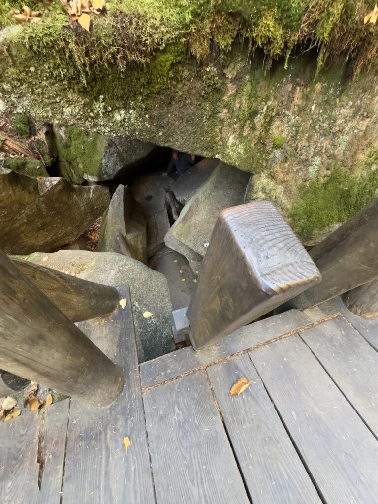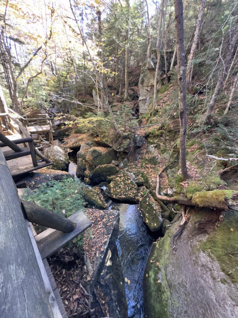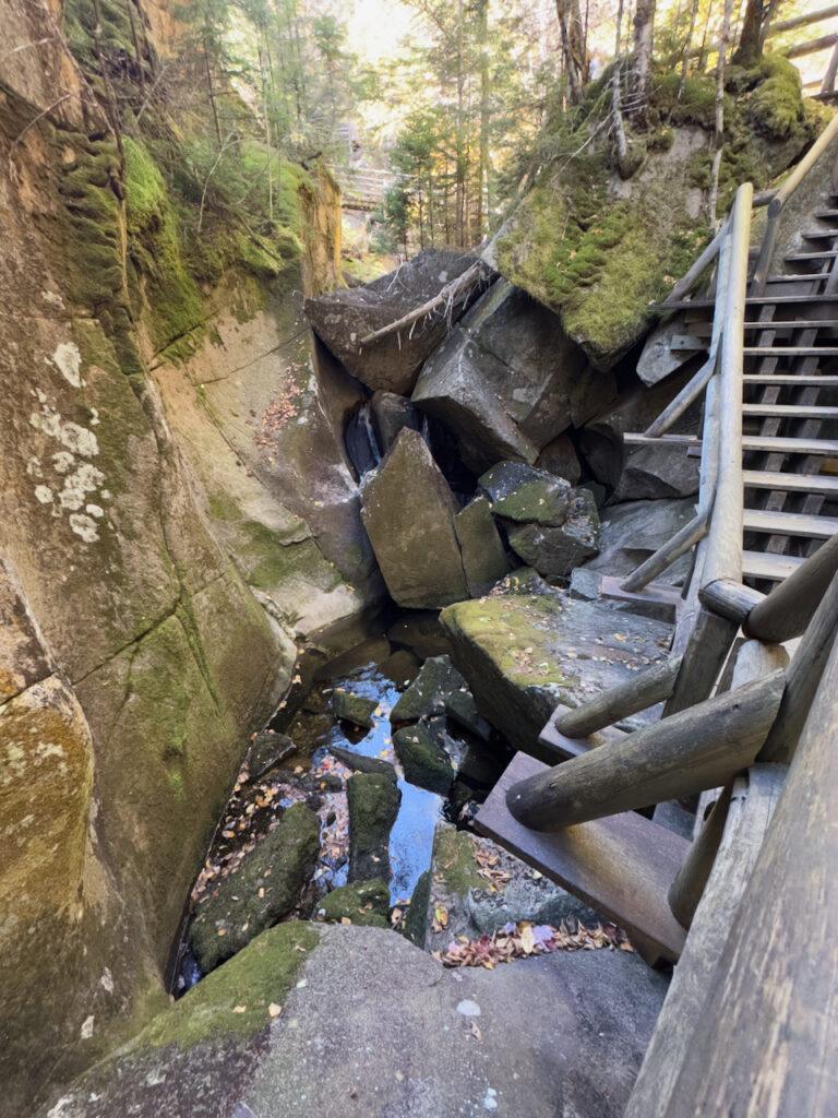 Today, a 1-mile wooden boardwalk trail guides visitors through the gorge. This path leads you up, down, and around the stunning rock formations, offering incredible views of the river, waterfalls, and the surrounding forest. Along the way, you have the option to explore eleven different boulder caves, each with its own unique character and challenge.